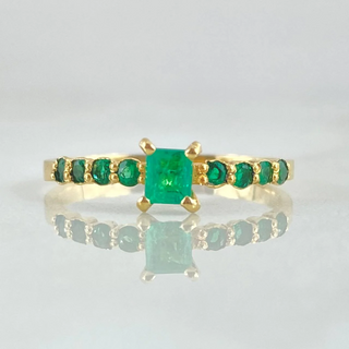 Anillo Solitario Rectangular | Esmeralda 7pts Oro Amarillo 18K | 1.85gr | T6 1/2