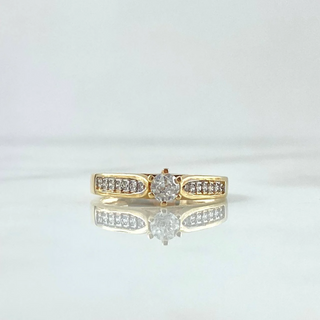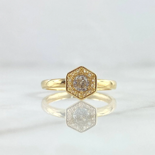 Anillo Solitario Halo Hexagonal | Oro Amarillo 18K | 2gr | T6 3/4 | Circones Blancos