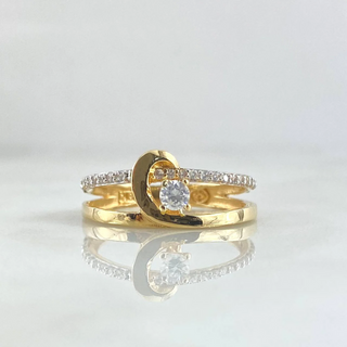 Anillo Solitario Ola Paralela | Oro Amarillo 18K | 2.95 gr | T6 3/4 | Circones Blancos