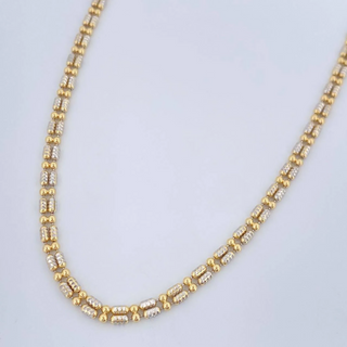 Cadena Infinito Tipo Veneciana | Dos Oros Amarillo Blanco +2 18K | 15.4gr | 63cm | 2.7mm Broche Misil Circones Blancos