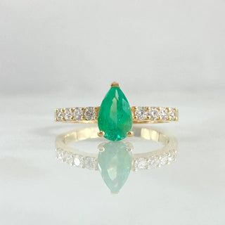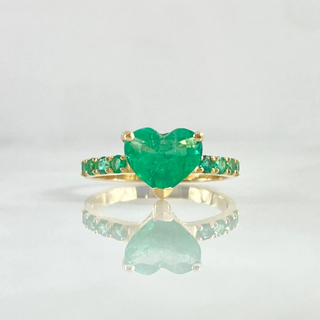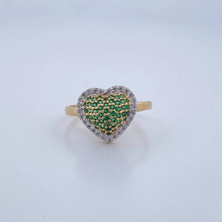 Anillo Corazón Atrapado | Oro Amarillo 18K | 2.6gr | T7 | Esmeralda Central 1.5 Qts Esmeraldas Laterales 40pts
