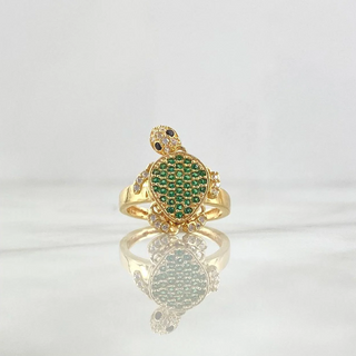 Anillo Tortuga Reticulada | Oro Amarillo | 3.45gr / T5 1/4 | Circones Blancos, Negros Y Verdes