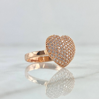 Anillo Corazón Abultado Tupido | Oro Rosa 18K | 2.7gr | T6 1/4 | Circones Blancos