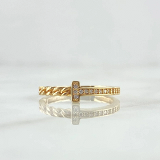 Anillo Eslabones Cubanos | Oro Amarillo 18K | 2gr | T6 1/4 | Circones Blancos