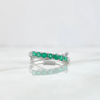Anillo Churumbela Parcial En Infinito | Oro Blanco 18K | 2.7gr | T6 1/2 | Esmeraldas 46Pts