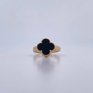 Anillo Trebol | Oro Amarillo Nac.Esp. 18K | 4.65gr | T6 3/4 | Onix Negra