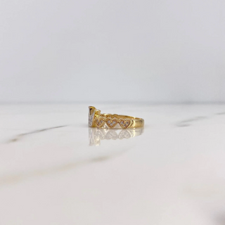 Anillo Corona Corazones | Dos Oros Amarillo Blanco 18K | 2.75gr | T7 | Circones Blancos