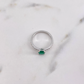 Anillo Solitario Churumbela | Oro Blanco 18K | 2.35gr | T6 1/2 | Esmeralda 49 Pts Diamante 30 Pts