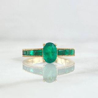 Anillo Solitario Ovalado Carril | Oro Amarillo 18K | 4.15gr | T6 3/4 | Esmeraldas 89pts