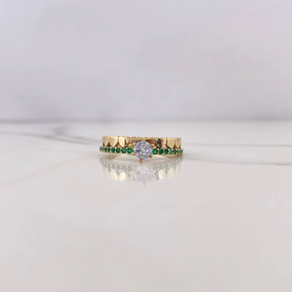 Anillo Solitario Corazones Linea | Oro Amarillo 18K | 2.45gr | T6 1/4 | Circones Verdes Blanco