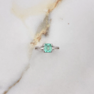 Anillo Solitario Doble Linea Cuadrado | Oro Blanco | 2.69gr | T6 1/4 | Esmeralda 1.00 Qts