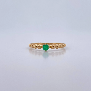 Anillo Solitario Esferas | Oro Amarillo 18K | 1.25gr | T6 1/4 | Esmeraldas 8 Pts
