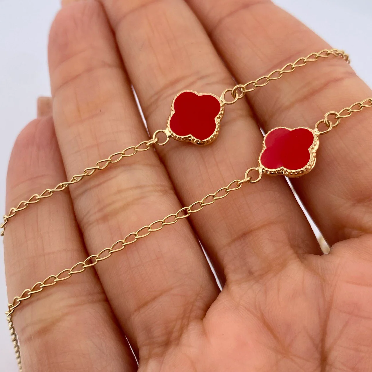 Cadena Espiga Trebol | Oro Amarillo | 3.7gr | 40cm | 2mm Electroestatico Rojo