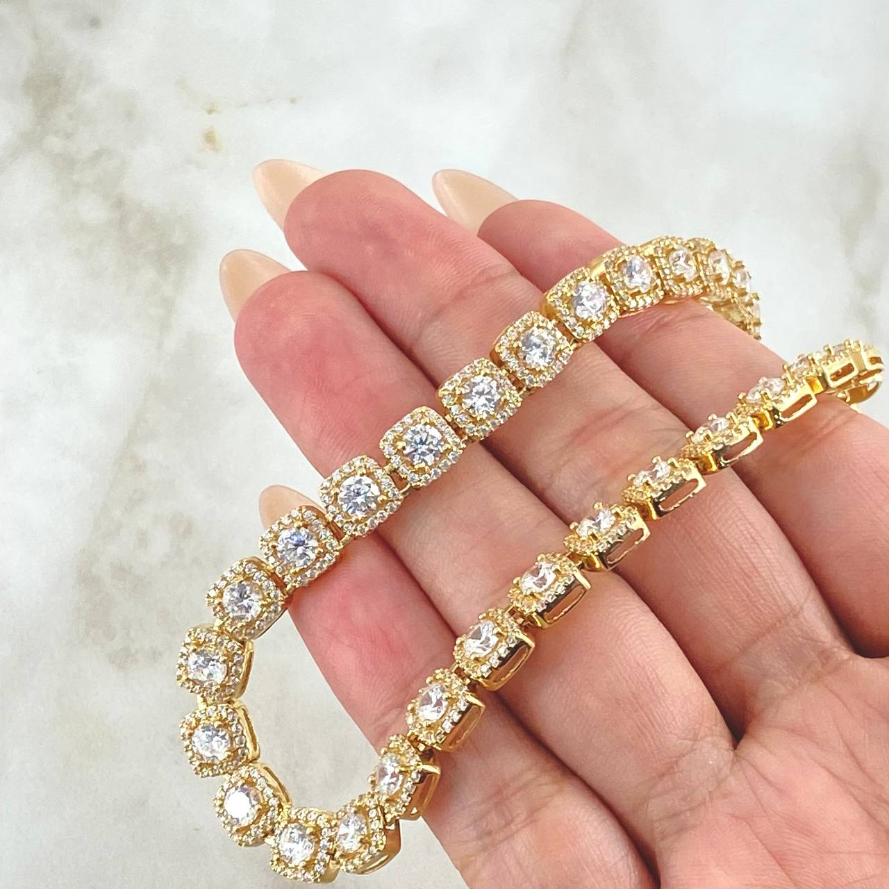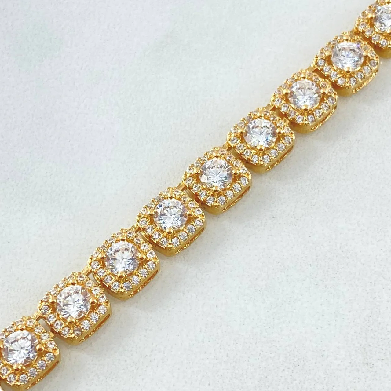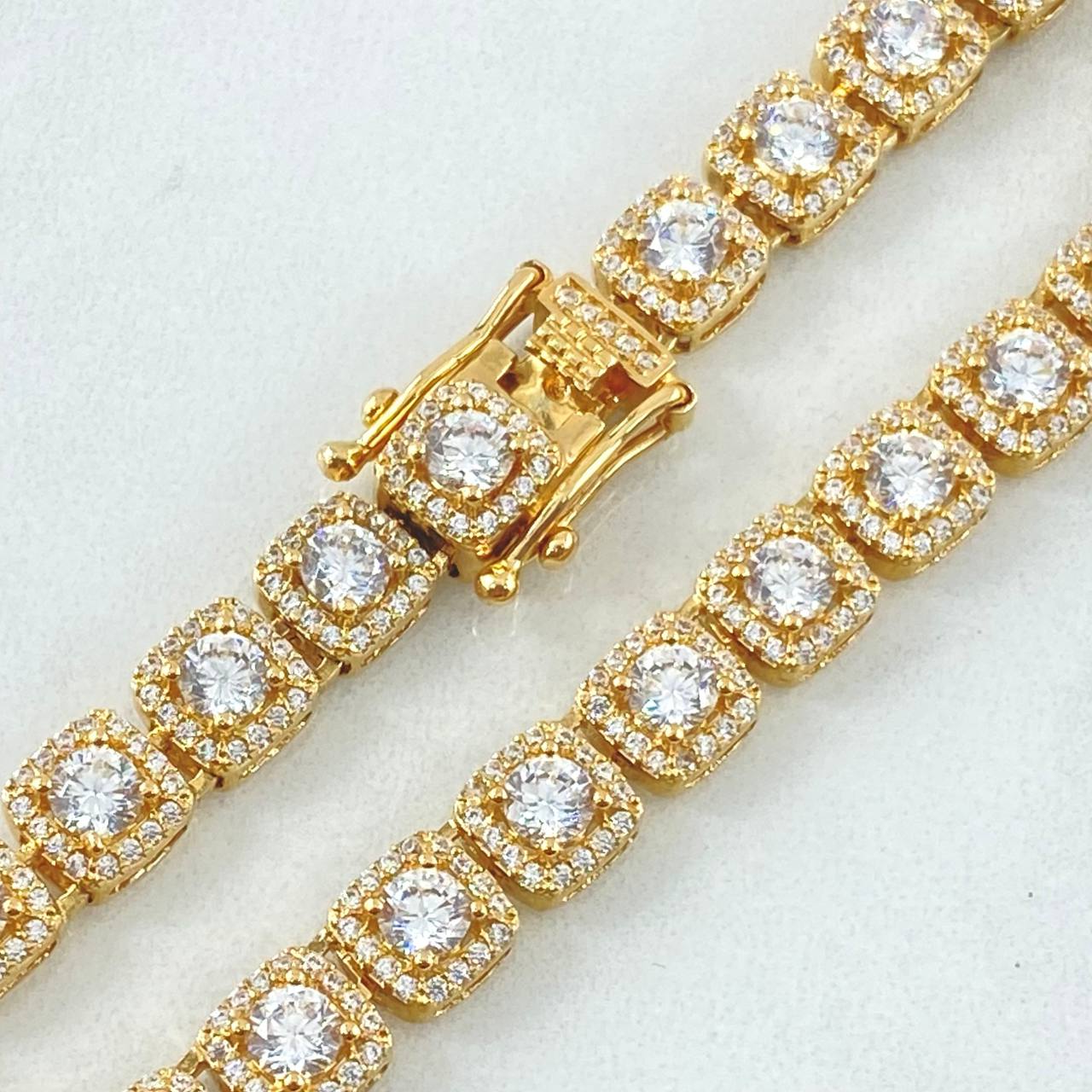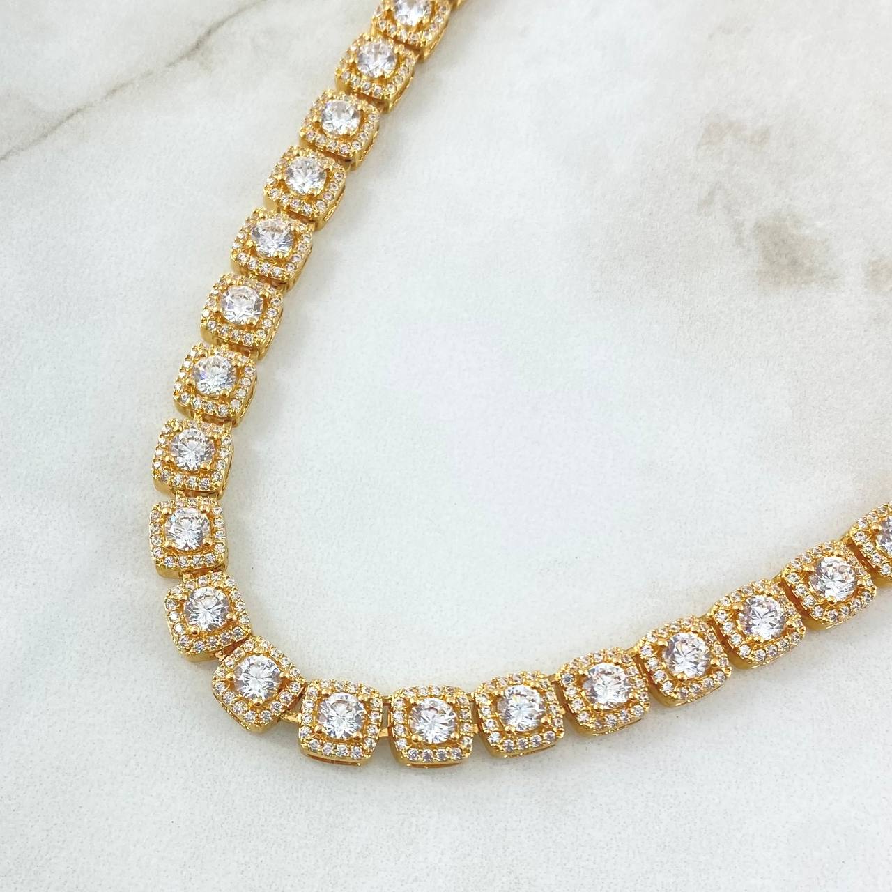 Cadena Tennis Halo Cubico | Oro Amarillo 18K | 39.5gr | 40cm