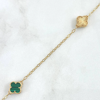 Cadena Cajón Trébol VCyA | Oro Amarillo Nac.Esp. | 7.9gr | 50cm | Malaquita Verde - Diamantado Liso