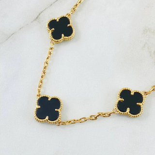 Cadena Aro Seguido Trebol | Oro Amarillo 18K | 2.45gr | 44.2cm | 1.1mm Electroestatico Negro Blanco