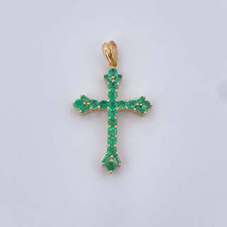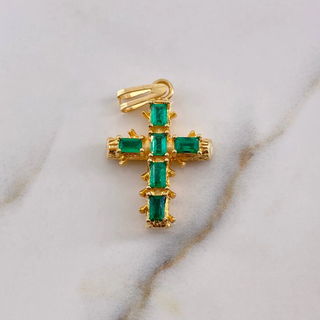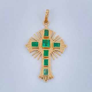Dije Cruz Barroco | Oro Amarillo 18K | 5.25gr | 3.5cm | Esmeraldas 2.03 Qts