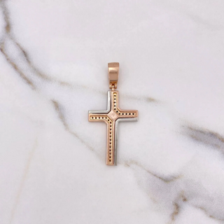 Dije Cruz | Dos Oros Blanco Rosa 18K | 10.25gr | 4.9cm | Circones Blancos Negros