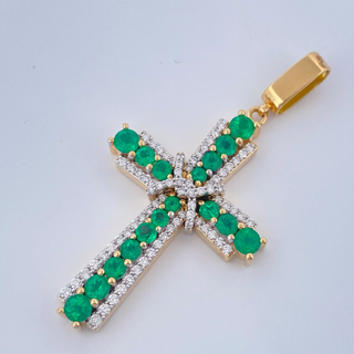 Dije Cruz Penitencia Esmeralda | Dos Oros Amarillo Blanco 18K | 9gr | 4.6cm