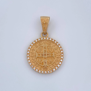 Dije Placa San Miguel Arcangel | Tres Oros 18K | 31.3gr | 7cm | Texturizado Circones Blancos