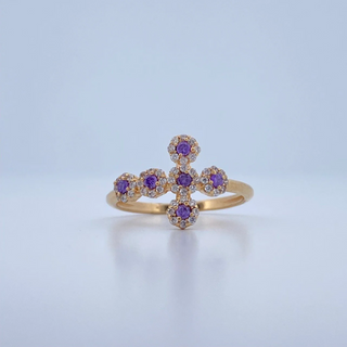 Anillo Crúz | Oro Amarillo 18K | 1.15gr | T5 3/4 | Esmeraldas 15pts