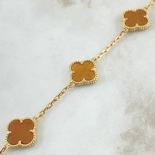 Pulso Aro Seguido Trébol VCyA | Oro Amarillo Nac.Esp. 18K | 14.3gr | 21.5cm | 3mm Ojo De Tigre Punteado