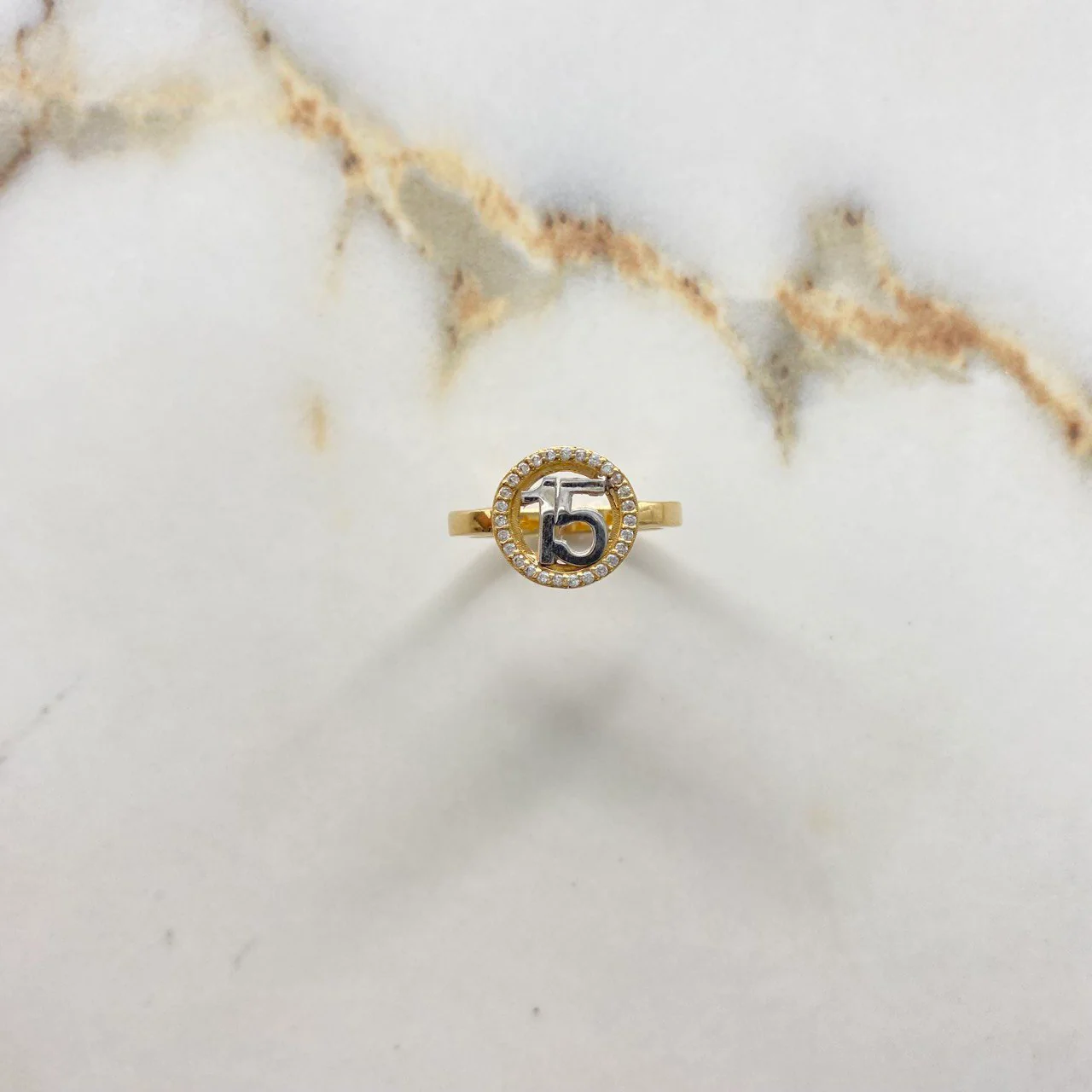 Anillo 15s Circular | Circones Blancos Dos Oros Amarillo Blanco | 3.1gr | T6 1/2