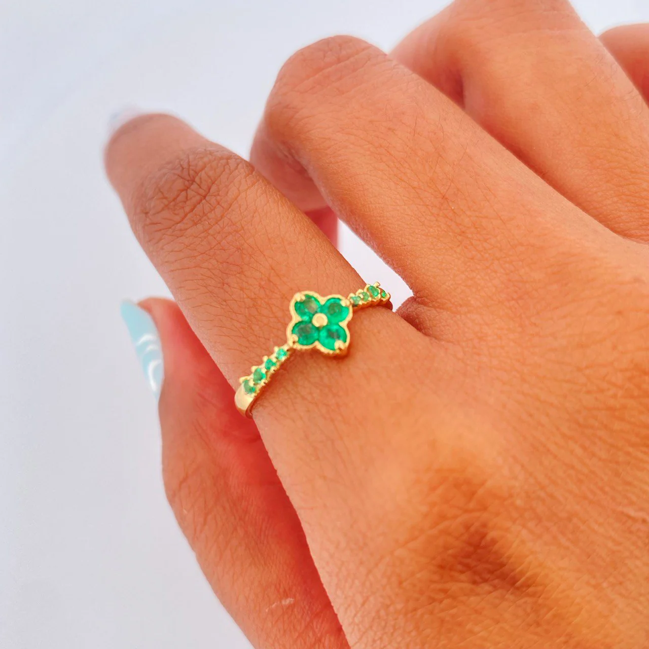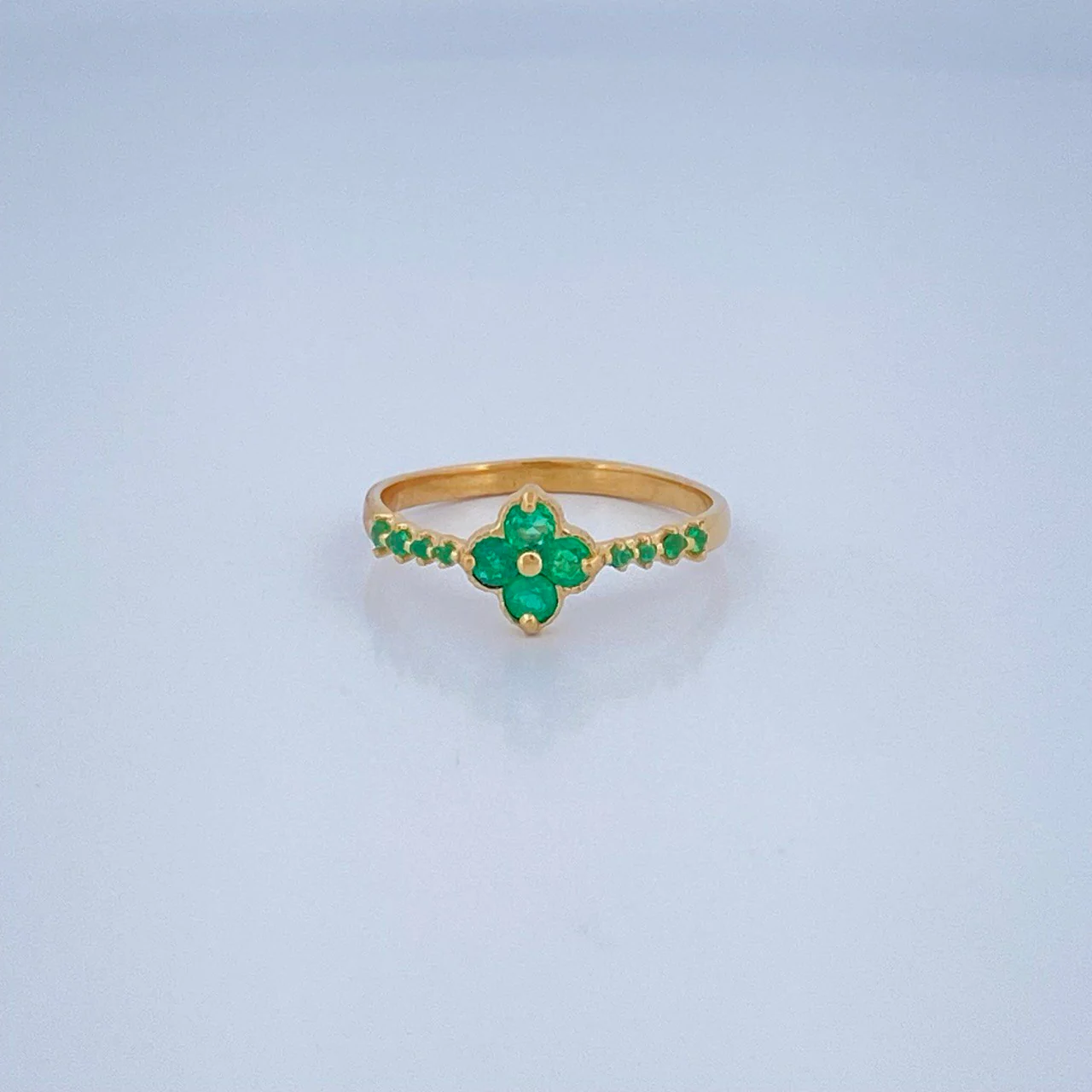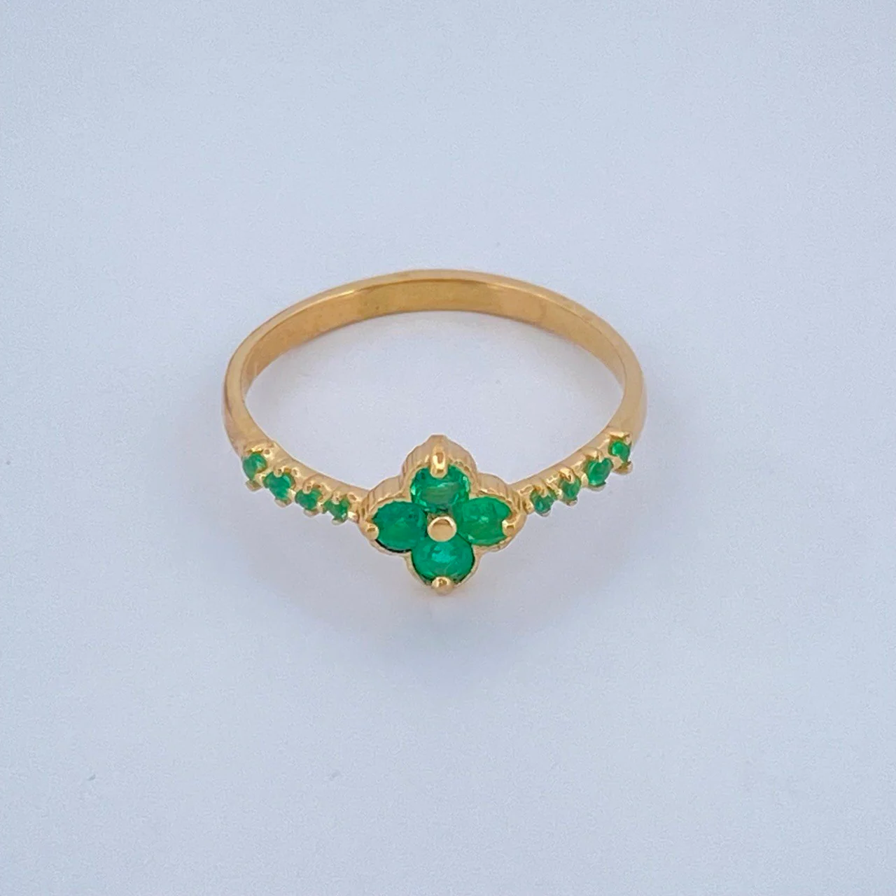 Anillo Floral Esmeraldas | Oro Amarillo 18K | 1.95gr | T8