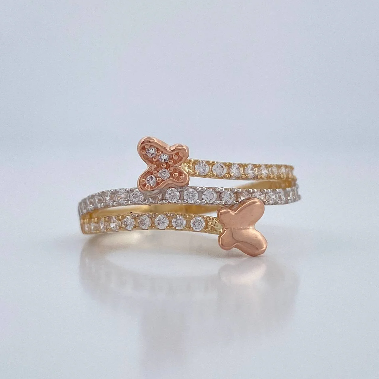 Anillo Mariposa Doble Carril | Tres Oros 18K | 2.6gr | T7 1/4