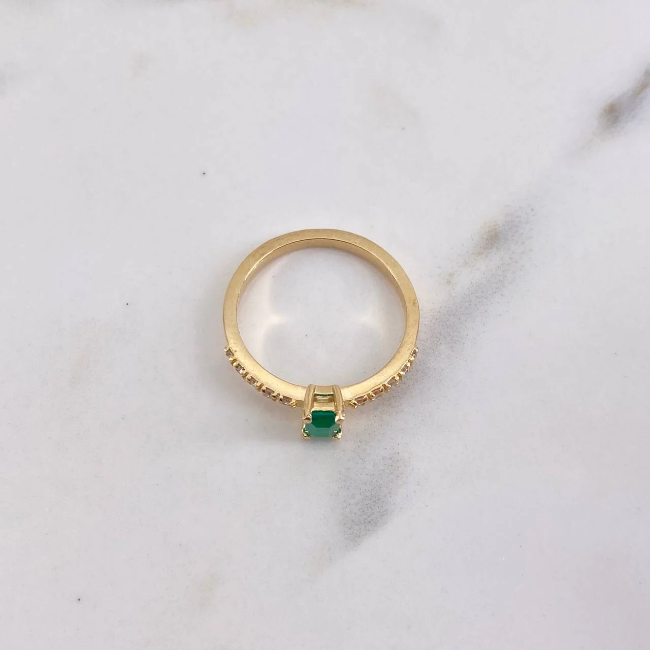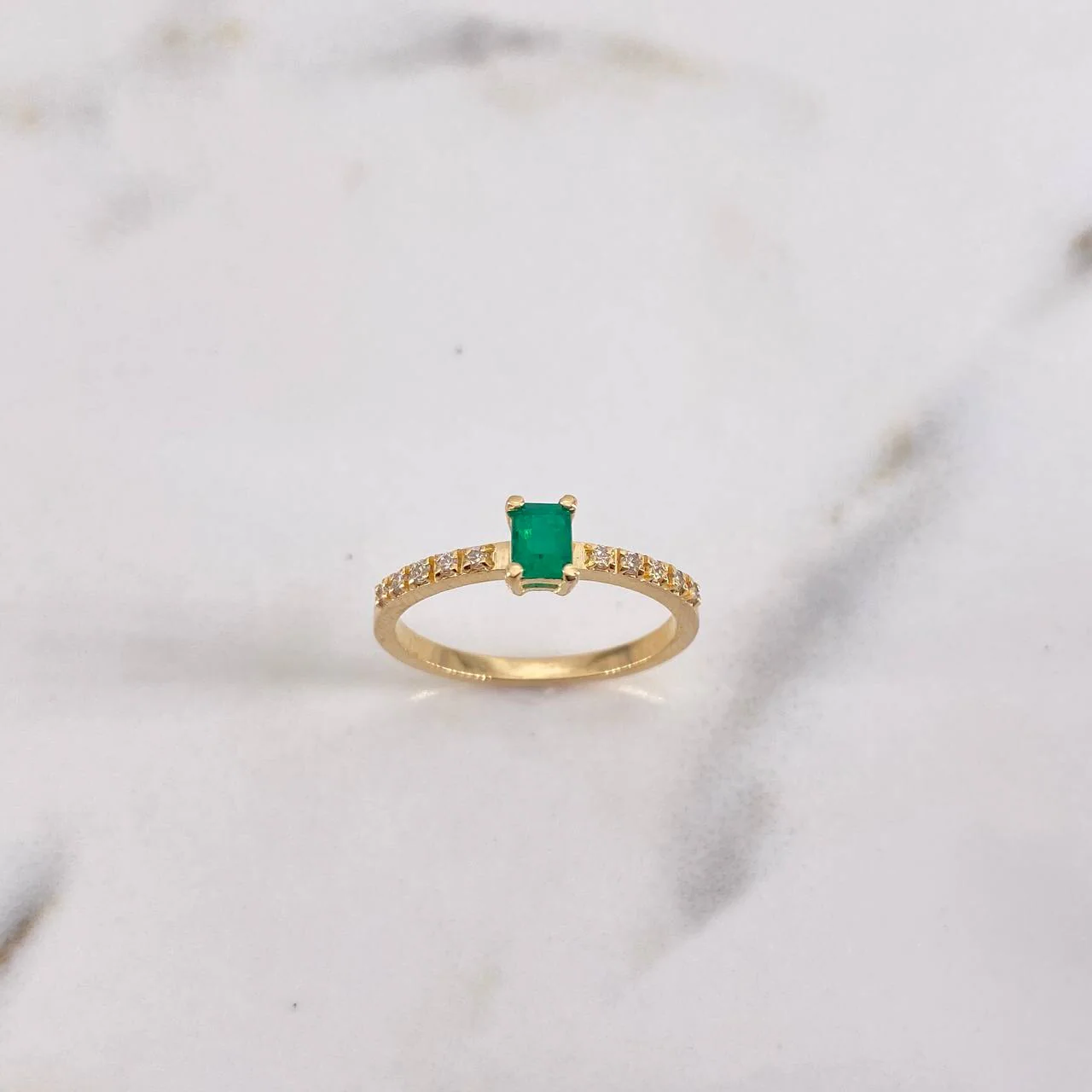 Anillo Solitario Churumbela | Oro Amarillo 18K | 2.6gr | T7 | Esmeralda 47 Pts Diamante 20 Pts
