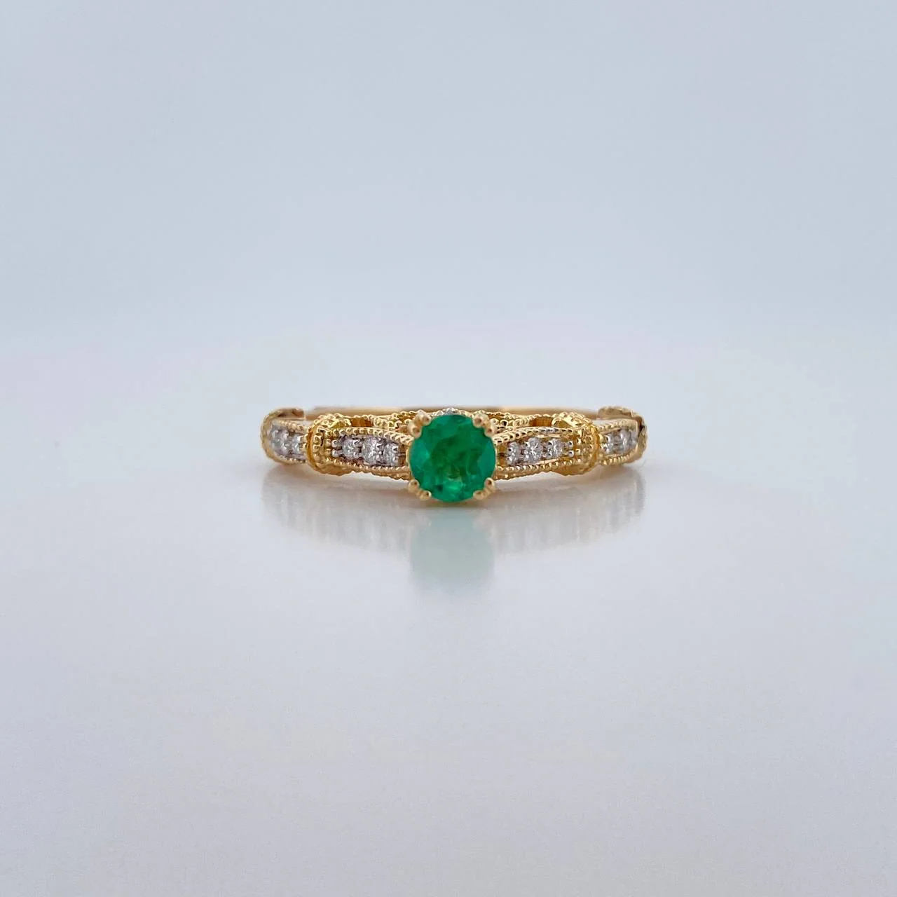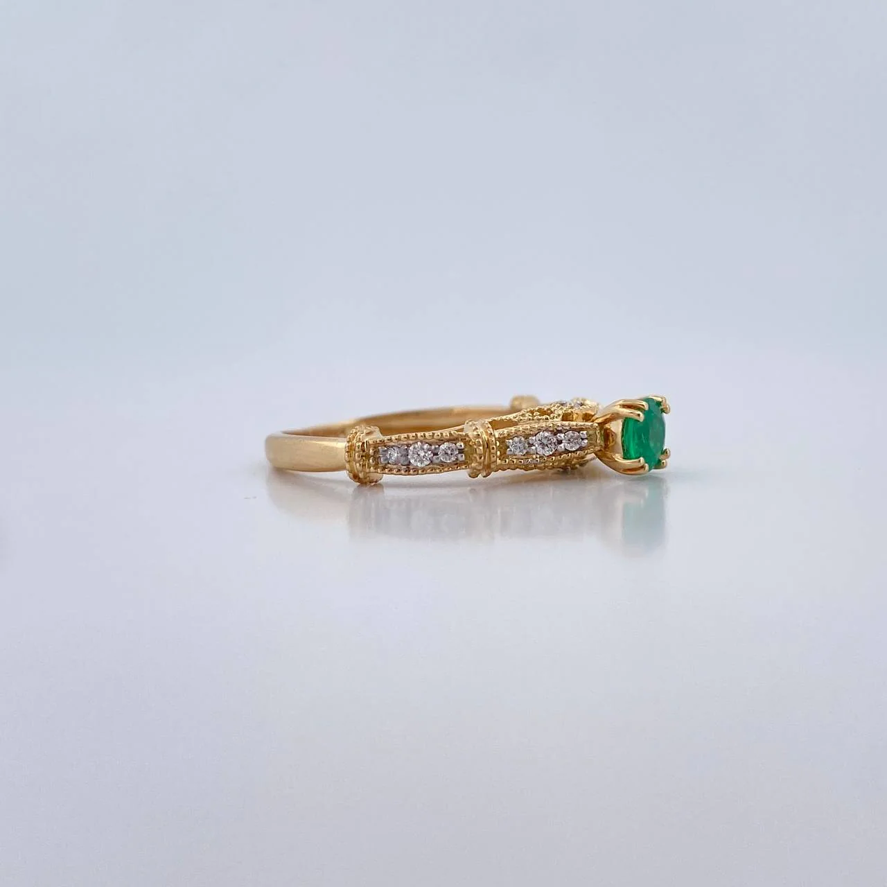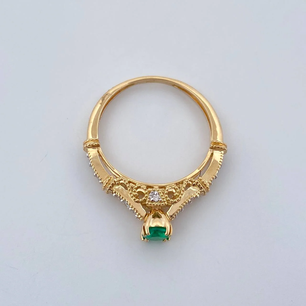 Anillo Solitario Puente | Oro Amarillo 18K | 3.45gr | T6 3/4 | Esmeraldas 24 Pts Diamantes 16 Pts
