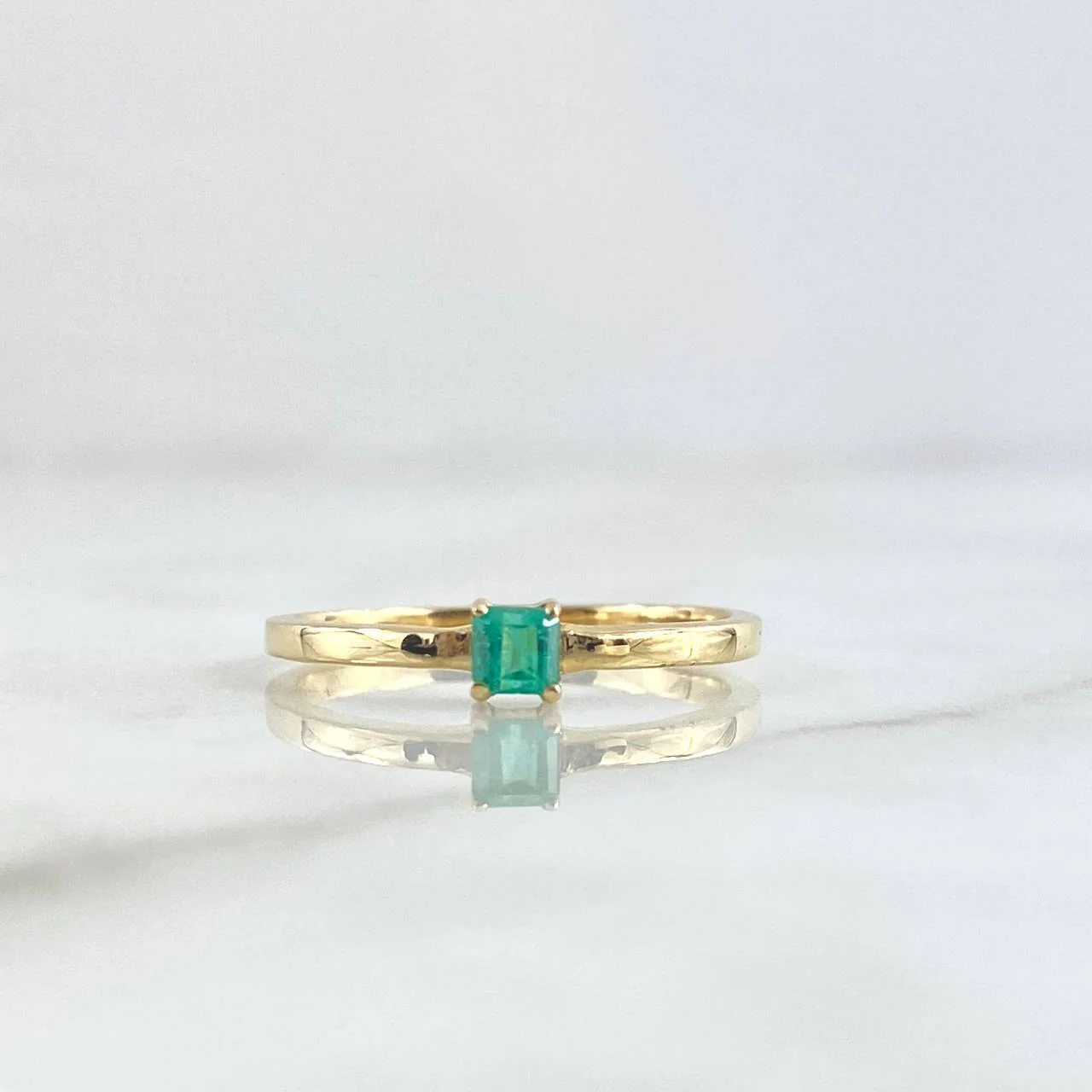 Anillo Solitario Rectangular | Esmeralda 7pts Oro Amarillo 18K | 1.85gr | T6 1/2