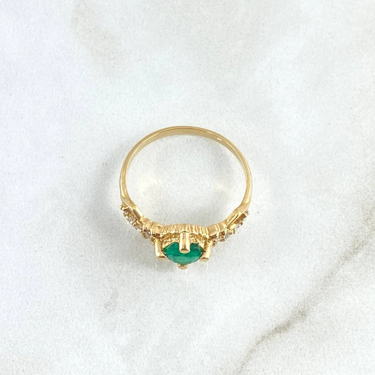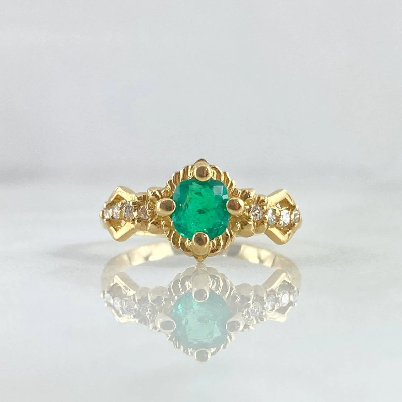 Anillo Solitario Rombos Centrales | Oro Amarillo 18K 2.6gr | T7 1/4 | Esmeraldas 70pts Diamantes 16pts