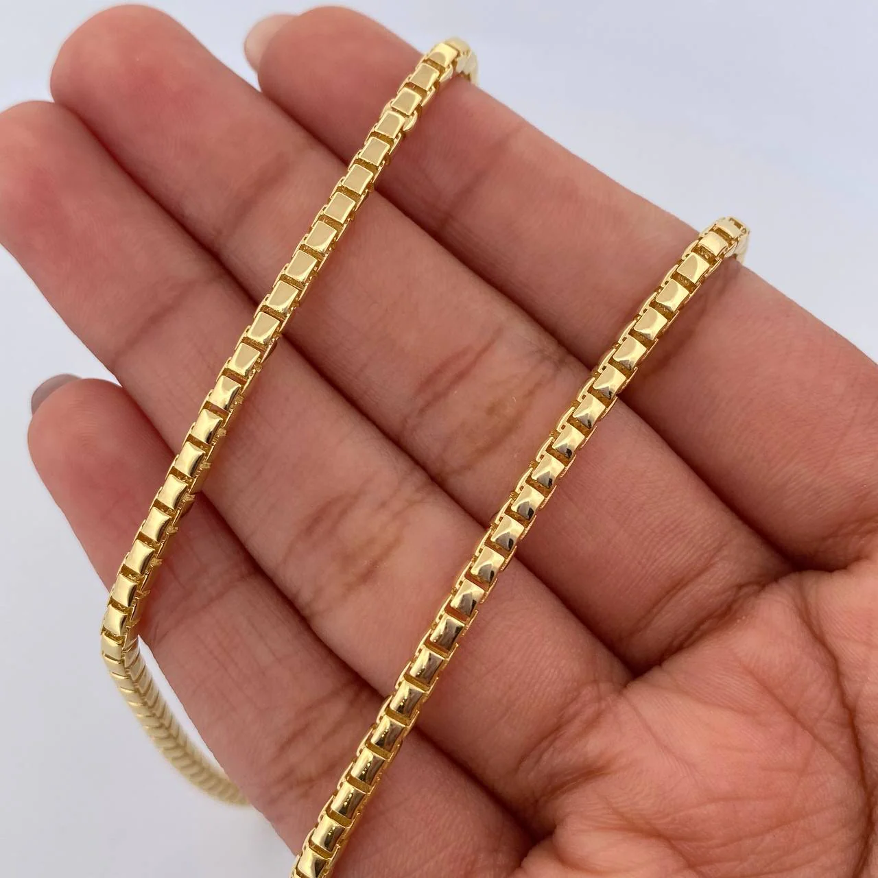 Cadena Infinito Tipo Veneciana | Dos Oros Amarillo Blanco +2 18K | 15.4gr | 63cm | 2.7mm Broche Misil Circones Blancos