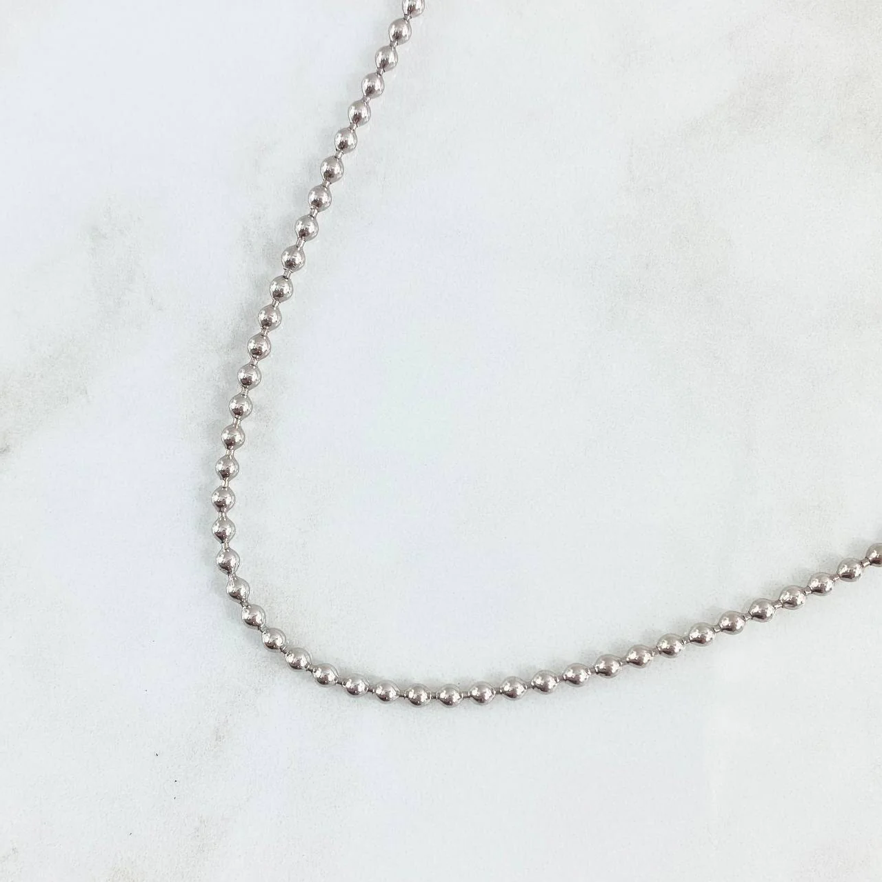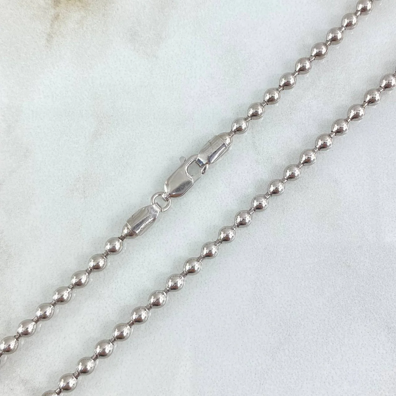 Cadena Militar | Oro Blanco 18K | 20.65gr | 55cm | 3mm Bolas Lisas