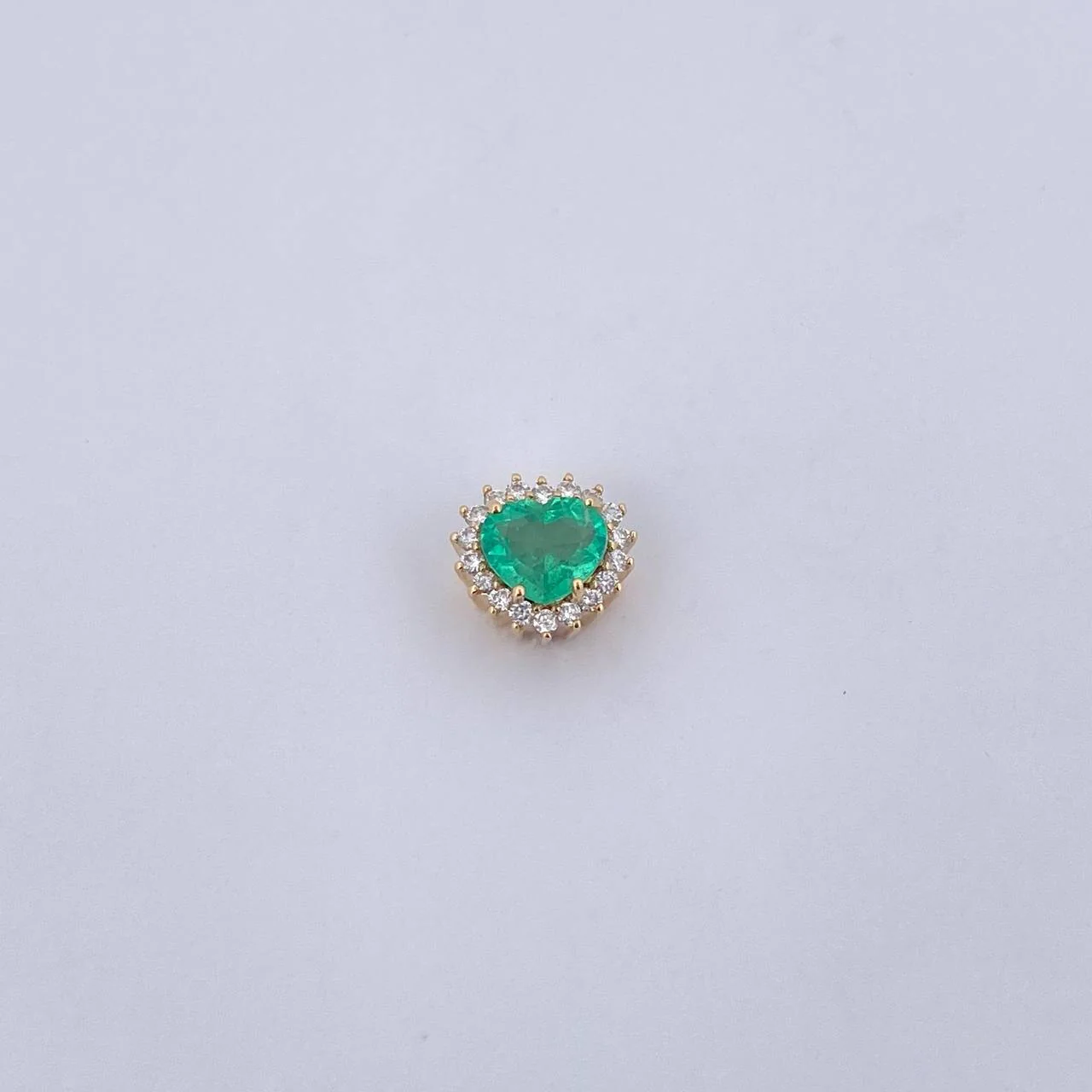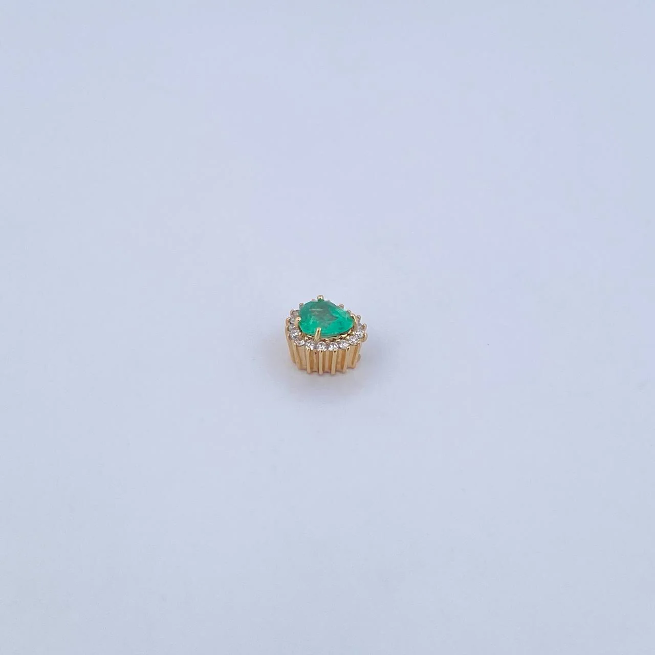 Dije Corazon | Oro Amarillo 18K (Joya) | 0.65gr | 0.6cm | Esmeralda 33 Pts Diamantes 11 Pts