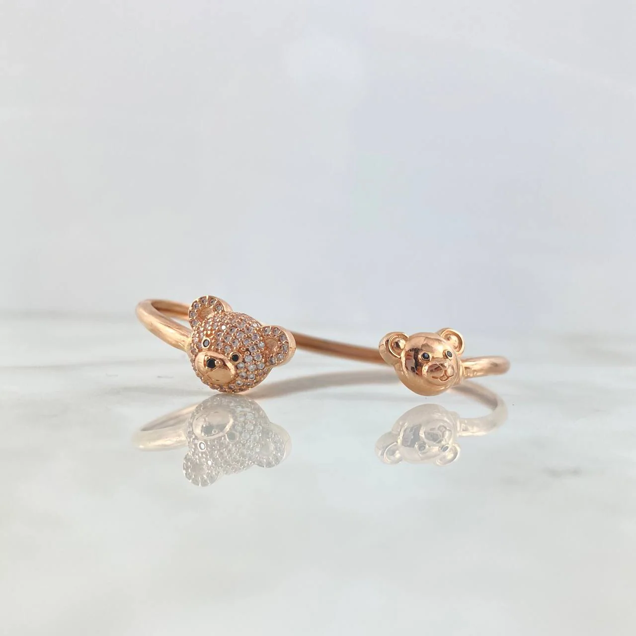 Pulso Aro Abrazo Osos | Circones Blancos y Negros Oro Rosa | 7gr | 17cm