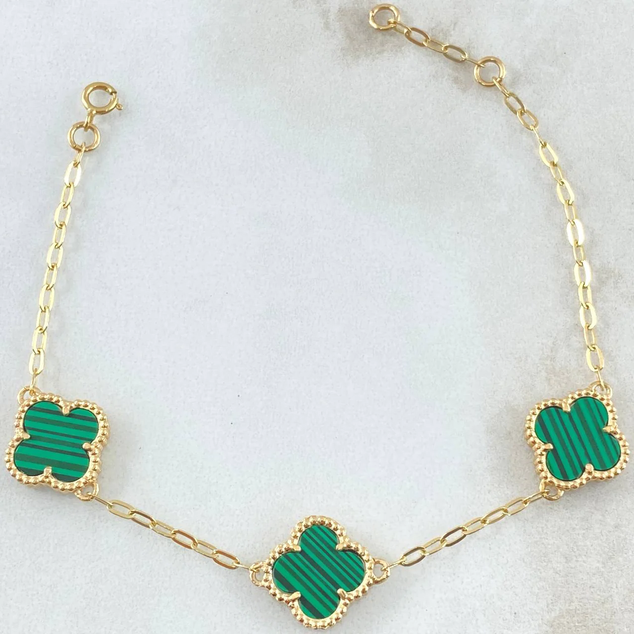 Pulso Aro Seguido Trebol Verde | Nac.Esp. Oro 18K | 5.9gr | 21.5 cm
