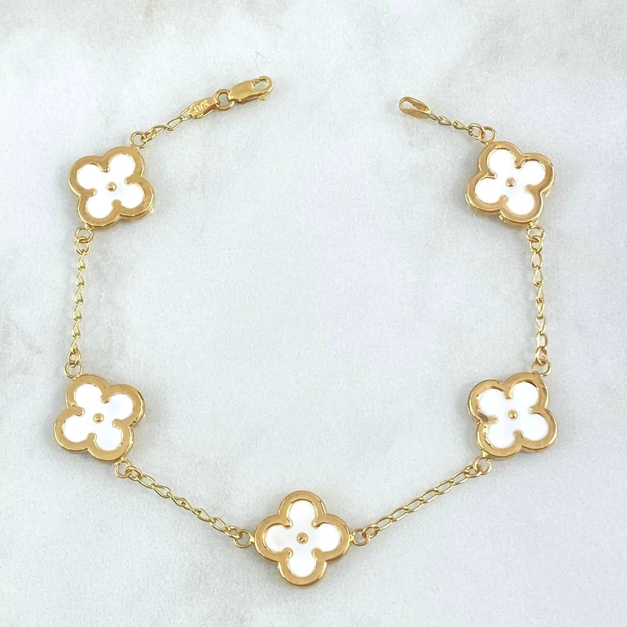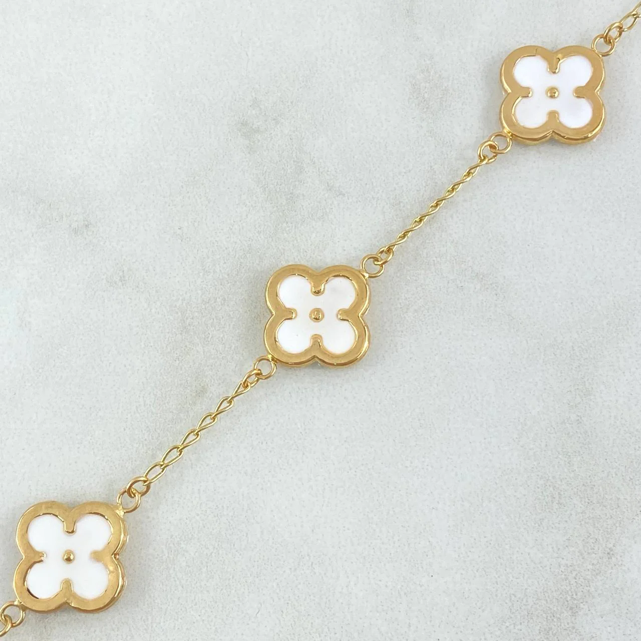Pulso Aro Seguido Trébol VCyA | Oro Amarillo 18K | 5gr | 19cm | 13mm Blanco Electrostático Liso