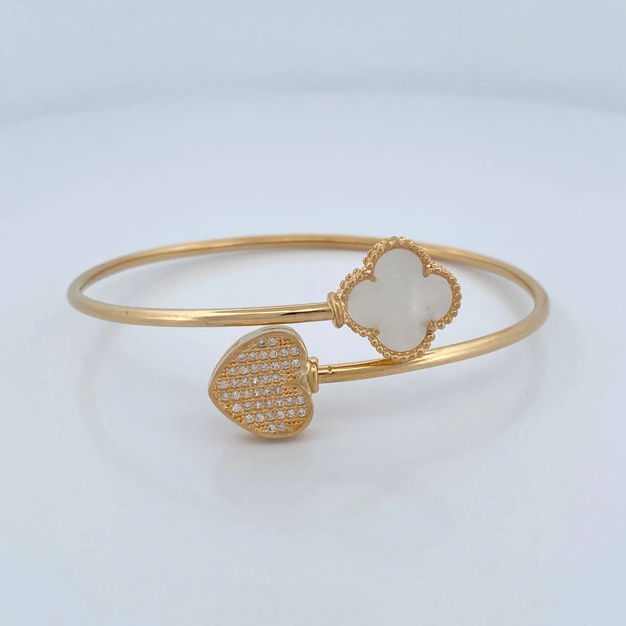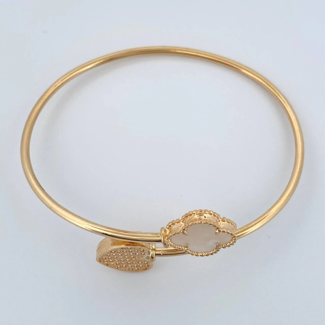 Pulso Aro Trebol Corazon | Oro Amarillo Nac.Esp. 18K | 9.3gr | 19.3cm | 2.3mm